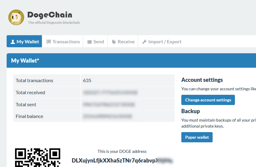 Для DogeCoin (DOGE), который благодаря Илону Маску стал весьма популярен, хотя изначально создавался как шуточная криптовалюта, использую dogechain.info Также как и в первых двух, завести кошелёк и разобраться в простом функционале - дело нескольких минут. Адрес вашего кошелька вы увидите сразу в кабинете, а для отправки монет используем кнопочку "send"