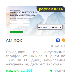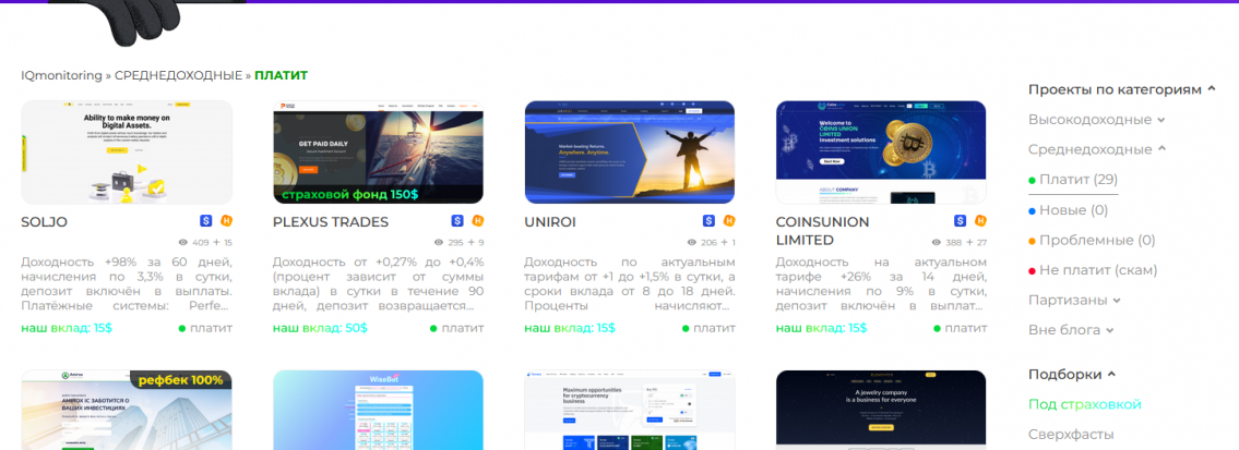 Вторая - это страховки, которые могут помочь не потерять весь депозит в неудачно отработавшем проекте. В данных правилах подробнейшим образом изложена вся информация, касательно страховок у нас на блоге. А нажав на кнопочку "под страховкой" в самом верхнем меню нашего сайта или в меню подборок, вы найдёте все проекты, в которых имеется бессрочный страховой фонд: /insurance.html