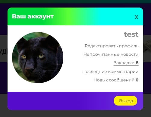 Как же увидеть эти самые избранные проекты? Всё просто, в меню вашего профиля на сайте нажимаем на пункт "закладки"