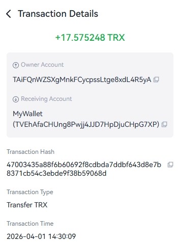 Выплата выплата + 13,5 TRX 03-29-2026 04:55:40 PM