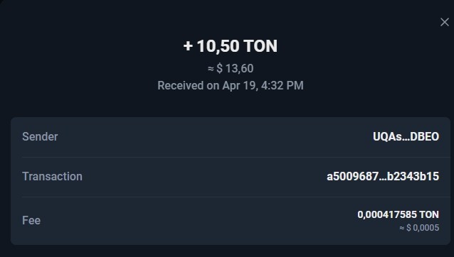 💰 Получено: 10.5 TON