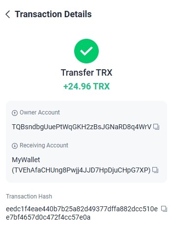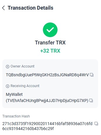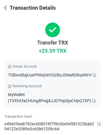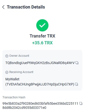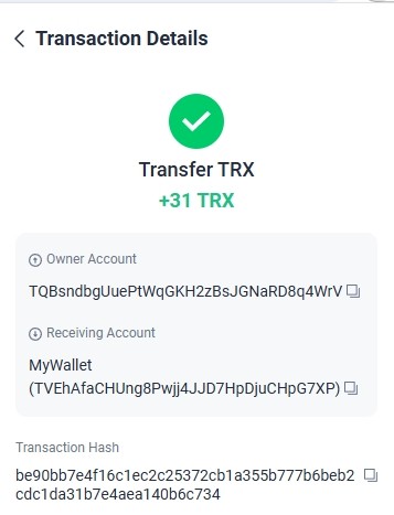https://tronscan.org/#/transaction/3e31311b4126b2c7e1761e3d1c563b5ece3e6696ced3