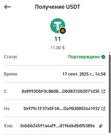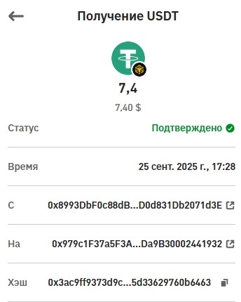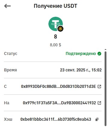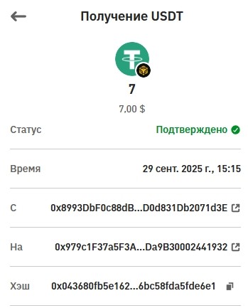 On your wallet 0x325a7D8B2**** Tether BEP20 withdrawn 6 USDT (batch: ?1621580) To see the details of this operation go link