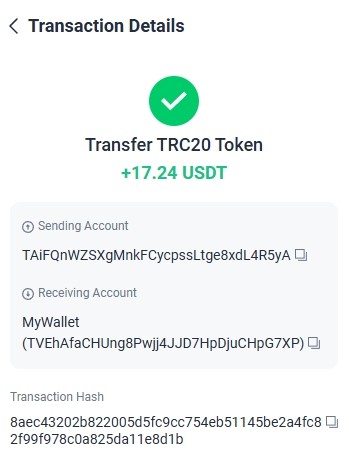 https://tronscan.org/#/transaction/0c1233e3433eeca320414aec8d7da09c741a27adf913