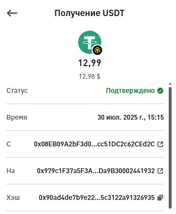 1.99 has been successfully sent to your Tether BEP20 account 0xd937df05884b13d1a9ac09b6100ff86608fa0cbf.