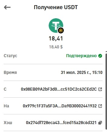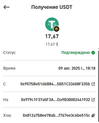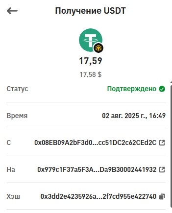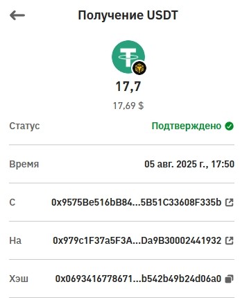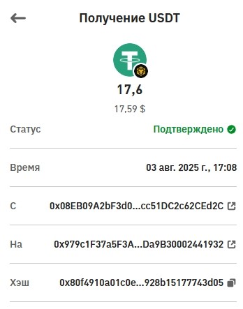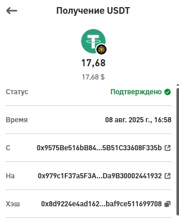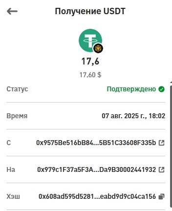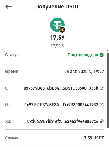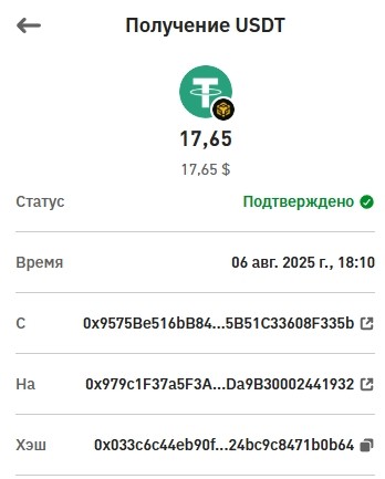 On your wallet 0x325a7D8B2**** Tether BEP20 withdrawn 6 USDT (batch: ?1621580) To see the details of this operation go link