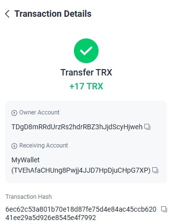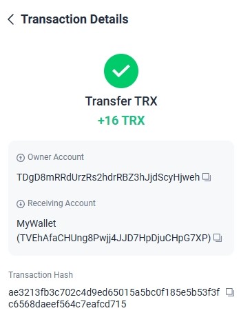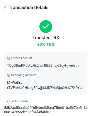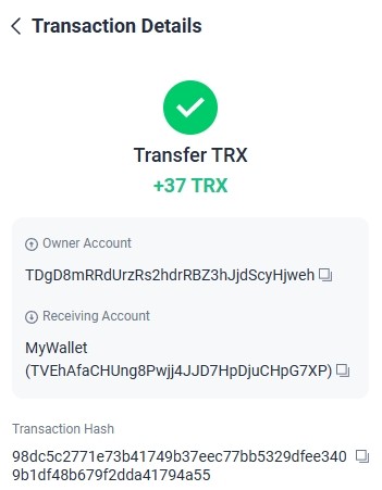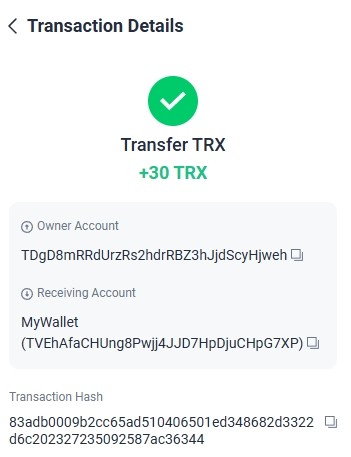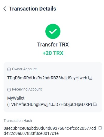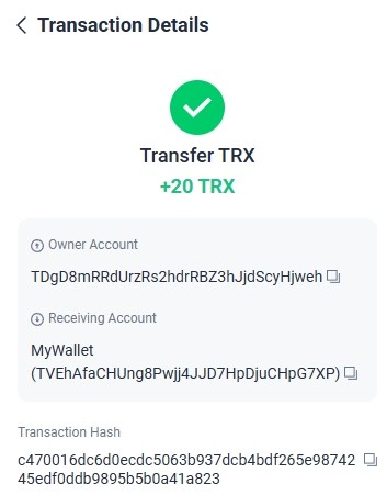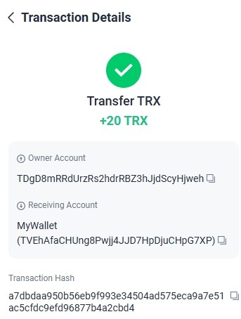 https://tronscan.org/#/transaction/3e31311b4126b2c7e1761e3d1c563b5ece3e6696ced3