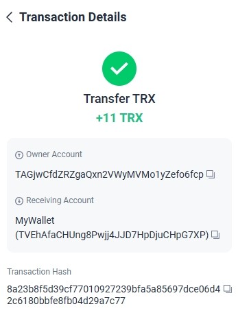 https://tronscan.org/#/transaction/c6a5b4788de6f7bb41e97ffcf470c72af554da0b349d