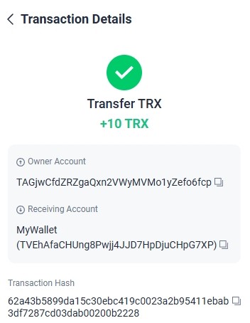 https://tronscan.org/#/transaction/0c1233e3433eeca320414aec8d7da09c741a27adf913