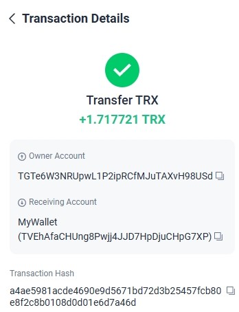 https://tronscan.org/#/transaction/3e31311b4126b2c7e1761e3d1c563b5ece3e6696ced3