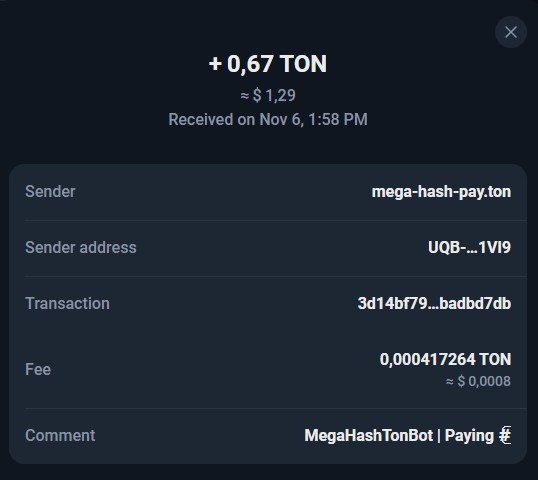 WITHDRAWAL FROM 0.0001 TON (withdrawal fee 4%)