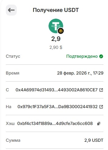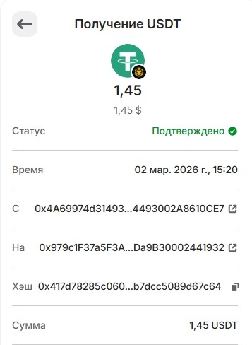 1 USDT 01.03.2026 0xf8c1d68ce5776daf463dff2ff66df8b8ae0cc6f3341d3f1bbf14b418ee463780