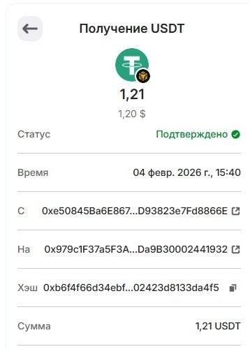 1 USDT 01.03.2026 0xf8c1d68ce5776daf463dff2ff66df8b8ae0cc6f3341d3f1bbf14b418ee463780
