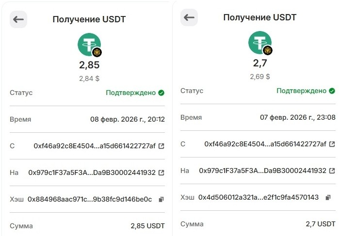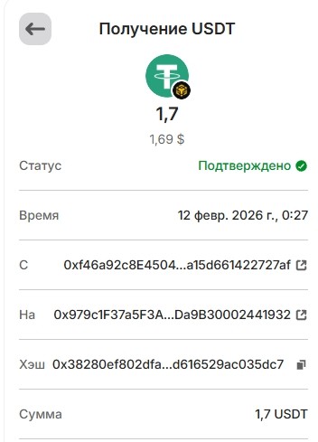 1 USDT 01.03.2026 0xf8c1d68ce5776daf463dff2ff66df8b8ae0cc6f3341d3f1bbf14b418ee463780
