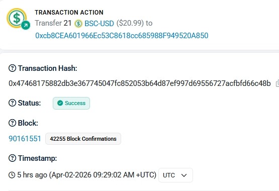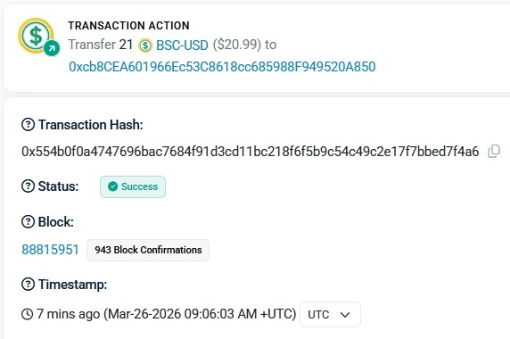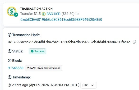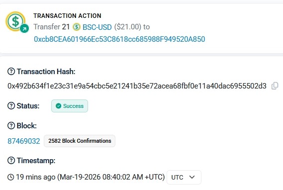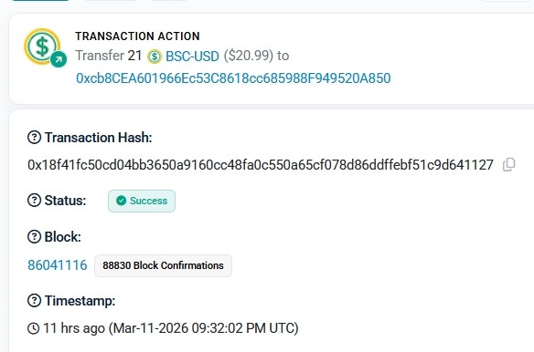 https://bscscan.com/tx/0xd36817f757ff6cae685207f7d72afdde198a1c5c3ca1e0e3416ed9