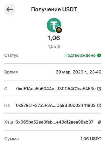 Выплата выплата + 13,5 TRX 03-29-2026 04:55:40 PM