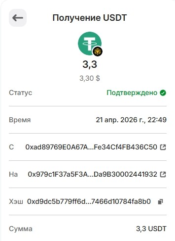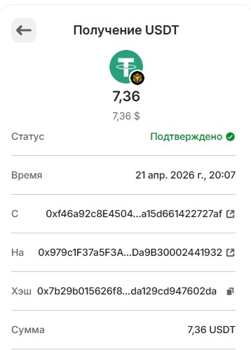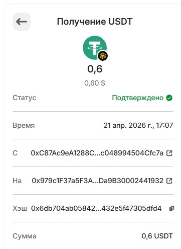 Выплата 1 USDT