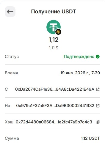 1 USDT 01.03.2026 0xf8c1d68ce5776daf463dff2ff66df8b8ae0cc6f3341d3f1bbf14b418ee463780