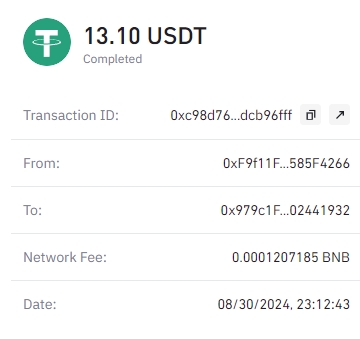 1.99 has been successfully sent to your Tether BEP20 account 0xd937df05884b13d1a9ac09b6100ff86608fa0cbf.