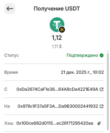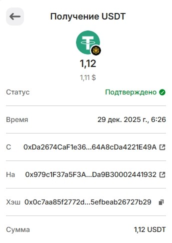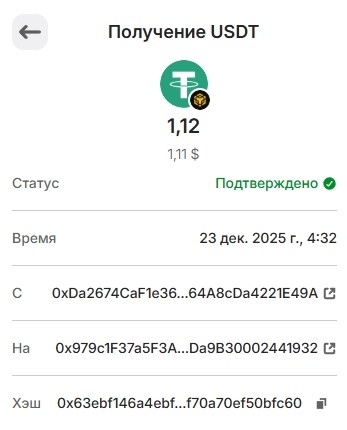 Выплата 1.12 USDT