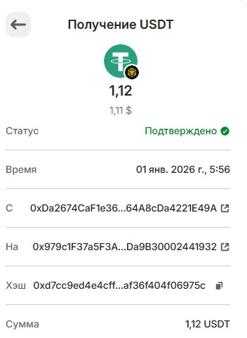 1 USDT 01.03.2026 0xf8c1d68ce5776daf463dff2ff66df8b8ae0cc6f3341d3f1bbf14b418ee463780