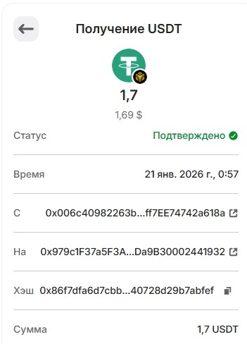 1 USDT 01.03.2026 0xf8c1d68ce5776daf463dff2ff66df8b8ae0cc6f3341d3f1bbf14b418ee463780