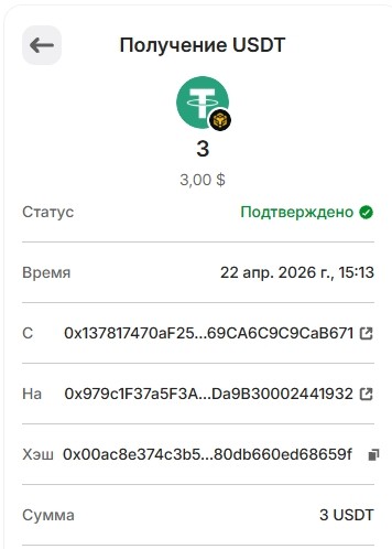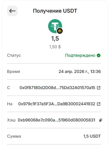 On your wallet 0x325a7D8B2**** Tether BEP20 withdrawn 6 USDT (batch: ?1621580) To see the details of this operation go link