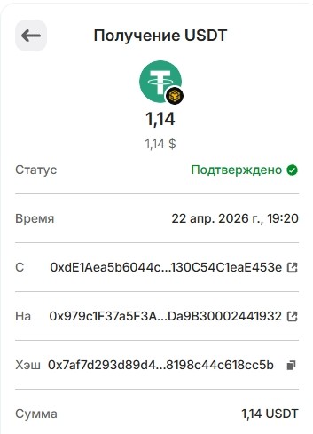 1 USDT 0x4aaaaf1bc5ad715cc17bc52a6ec34757ee2b45bcca0c1b6aca42efcdb6436748