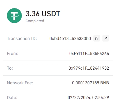 1.99 has been successfully sent to your Tether BEP20 account 0xd937df05884b13d1a9ac09b6100ff86608fa0cbf.